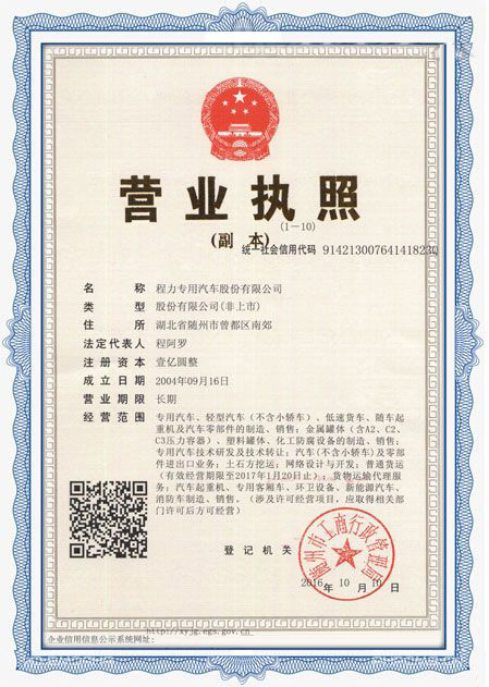程力專用汽車股份有限公司各類專用汽車的專業(yè)廠家,大型專用汽車廠。國內(nèi)園林綠化、石油化工、市政環(huán)衛(wèi)、壓力容器專用汽車商。注冊“程力威”牌,產(chǎn)品代碼:“CLW”。東風(fēng)、解放、福田、重汽、陜汽、北奔等公司的重要合作伙伴,主要從事各類專用汽車的業(yè)務(wù),同時也銷售各大型廠家的整車及配件。公司擁有自行出口權(quán),其主導(dǎo)品種有灑水車系列、吸污(吸糞)車系列、垃圾車系列、掃地車系列、油罐加(運)油車系列、高空作業(yè)車系列、清障車系列、隨車吊系列、自卸車系列、教練車系列、半掛車系列、化工車系列、消防車系列、廂式(冷藏車)系列、牽引車系列、粉粒物料車系列、攪拌車系列、壓力容器系列、專用車配件等十八大系列300多個品種車型。同時批發(fā)東風(fēng)、解放、楚風(fēng)各種二類底盤。